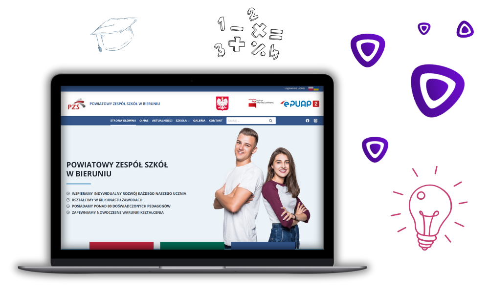 zgodne z WCAG 2.1, nowoczesne i responsywne, żadnych gotowych szablonów, tylko unikalny design dopasowany do Twojej szkoły